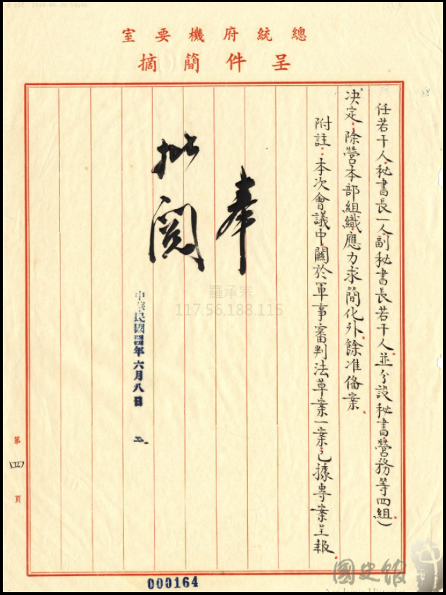 1955年5月10日,中國國民黨秘書長張厲生將該黨中常會第186次會議(4月18日)紀錄,呈報予總統府。該次會議主席為陳誠,其中第五組報告與決定,茲摘錄如下: