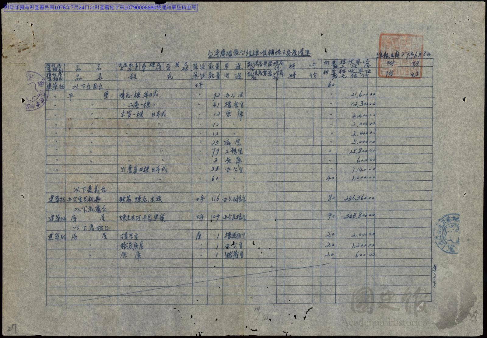 事由:電為本公司接收臺灣各臺室房地產早經核准轉帳有案,請分飭貴屬有關地政機關辦理登記手續,並請見後由(四十府綱字第78069號)