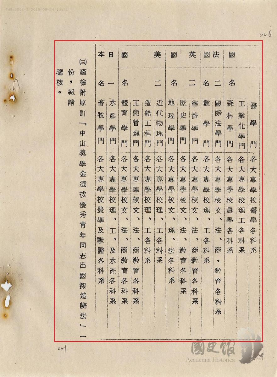 (二)本年留學國別及考試學門,遵照 副總裁指示及本日與會同志意見修訂如次:
