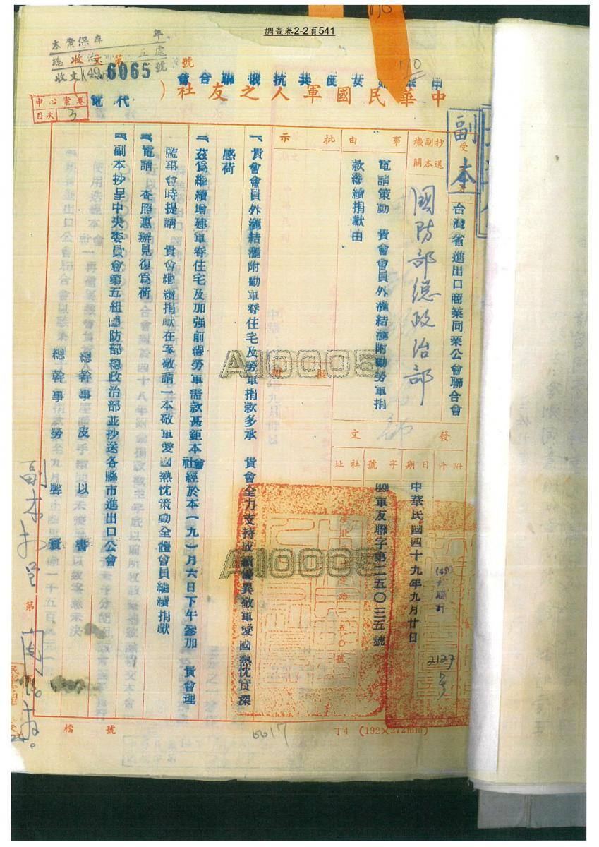 1960年9月9日,軍友社向國防部發出一紙公文,詢問可否繼續向省進出口公會收取超過原先預定額度的外匯勞軍捐。